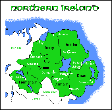 Ireland is divided into four provinces of roughly equal size, Leinster, Munster, Connaught and Ulster (from the east in clockwise direction). Each province consists of a number of counties, 32 in all. The Republic of Ireland consists of 26 counties, the remaining six form the state of Northern Ireland (a part of the United Kingdom). The northern province of Ulster actually consists of nine counties, three of which are within the Republic (Donegal, Cavan and Monaghan). All the main cities of Ireland are located at the estuaries of rivers. In general, the cities were either established or properly developed during the Viking period (the 9th and 10th centuries) as the English names often show, Waterford, Wexford, etc. The Republic of Ireland shows a strong concentration of population in the centre of the east coast in the Dublin metropolitan area where now almost a third of the population lives (about one million people). The second largest city is Cork (about 150,000), followed at some distance by Limerick, Waterford and Galway. The main urban centre in Northern Ireland is Belfast (with a population of about 300,000) followed by the city of Derry (sometimes called Londonderry following the renaming of the city by the English in the early seventeenth century).