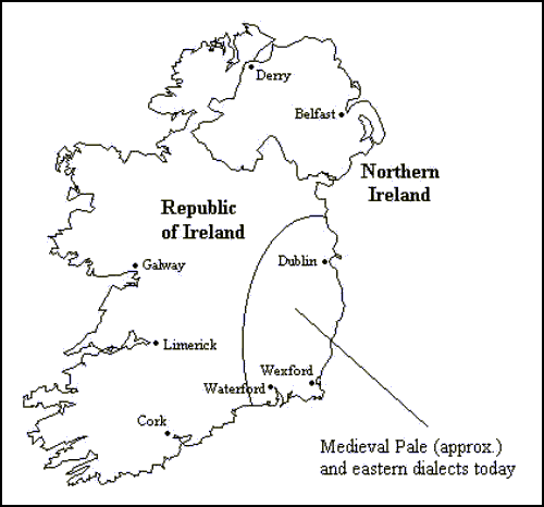 It is true to say that there is a general hiatus between the first and second periods of Irish English. There are, however, two exceptions to this statement. English survived in Dublin city and the sound system of that urban dialect offers evidence of very early settlement, that is before the modern period. In particular medieval Irish English seems to have existed into the early modern period in an area to the immediate north of Dublin called Fingal. A few short documents in the variety of this area have survived.