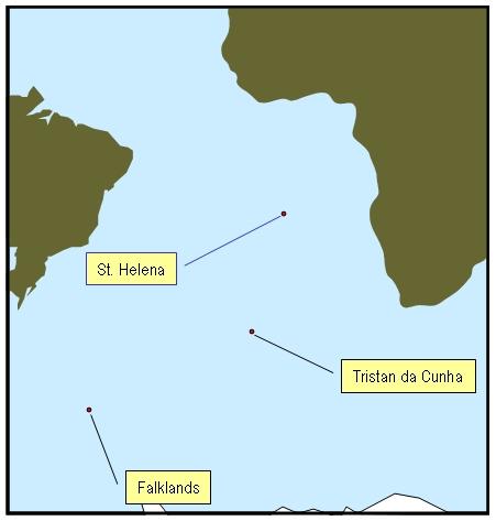 The anglophone South Atlantic consists of three island locations: (i) St. Helena, (ii) Tristan da Cunha and (iii) The Falklands. There are separately modules on this website with information about these islands.