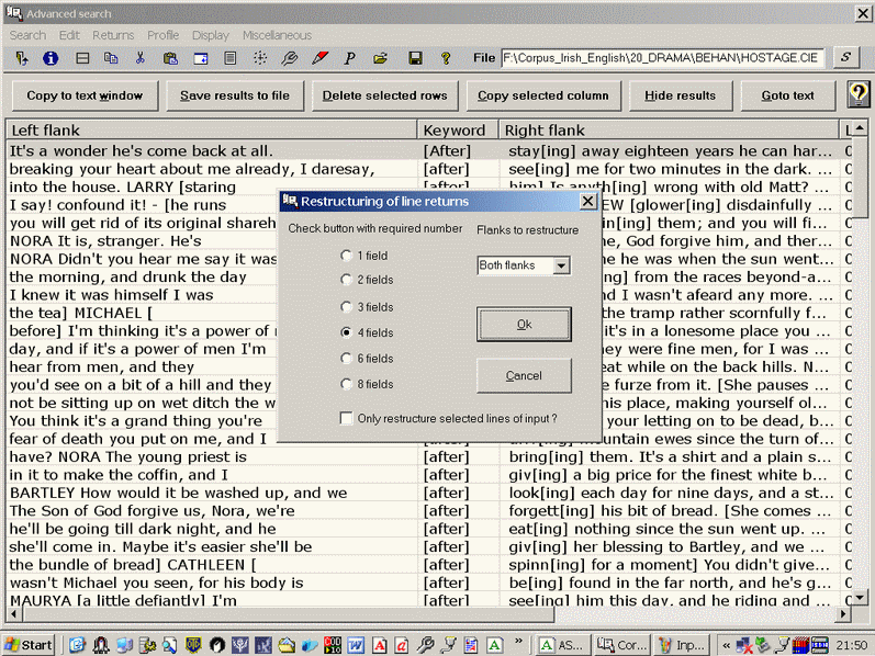 Re-arranging finds as a grid showing collocations