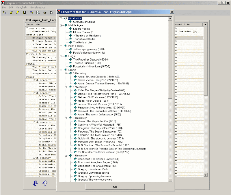 Make Tree is a flexible tool with which you can create and edit the small file which is responsible for the presentation of a corpus in tree form within Corpus Presenter. This file is called a data set file and it carries the extension .CPD.