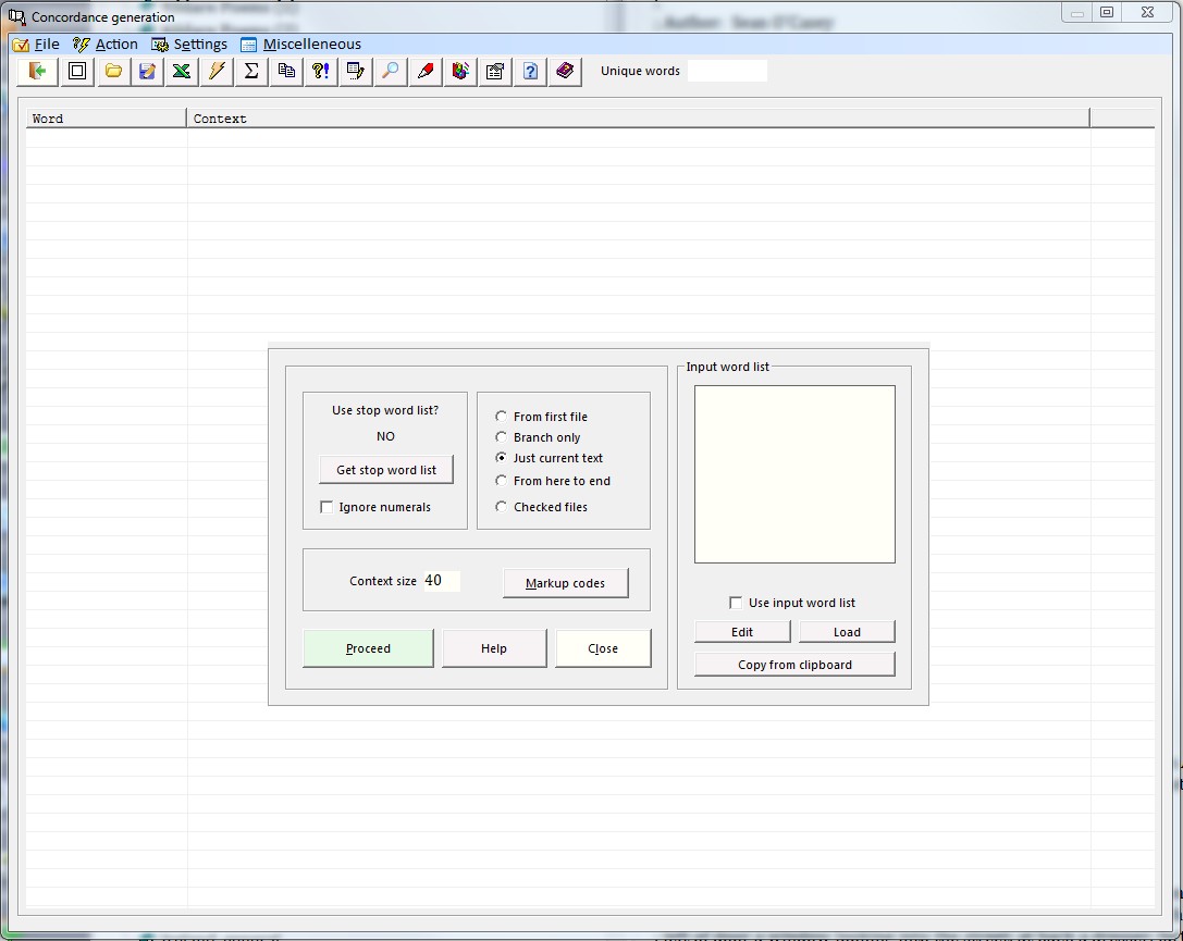 d) Make a word list from any set of texts, shortcut: Ctrl-W. (see dedicated section below).