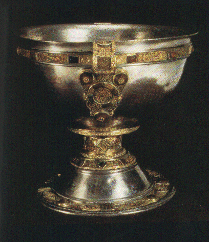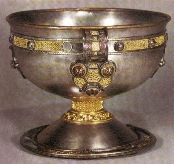 Among the most impressive hoards is the Ardagh Hoard, found accidentally in 1868 by two farmers working a field within a ring fort (Irish rath) at Reerasta, near the village of Ardagh, Co. Limerick. This hoard consists four ornate brooches, a small bronze chalice and, most importantly, the larger chalice, now simply known as the Ardagh Chalice. The chalice is about six inches tall and can be viewed in the National Museum of Ireland.