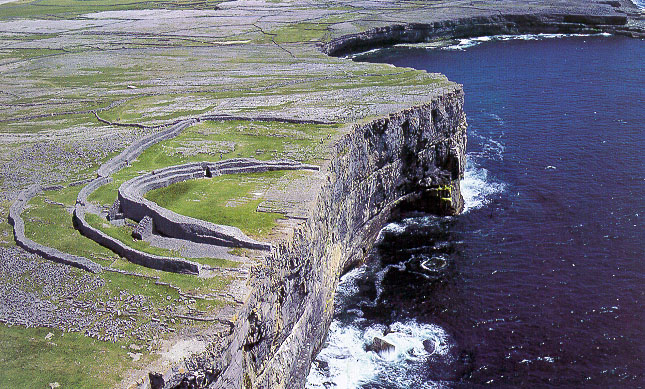 Prehistoric stone fort – Dún Aengus – at a cliff edge on Inishmore (largest of the Aran Islands)
