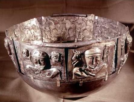 Gundestrup Cauldron from Denmark with Celtic figures on the outside; Irish Bronze Cauldron, c. 600 B.C.