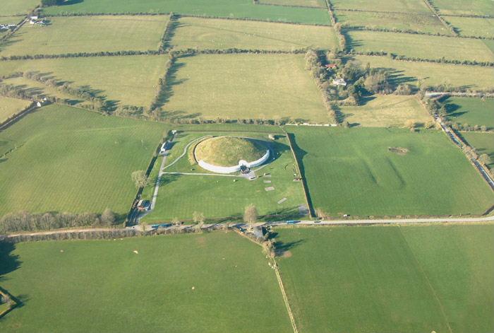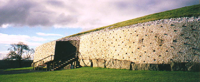 Overview and outside of Newgrange (a passage grave in Co. Meath dating from about 3,200 BC)
