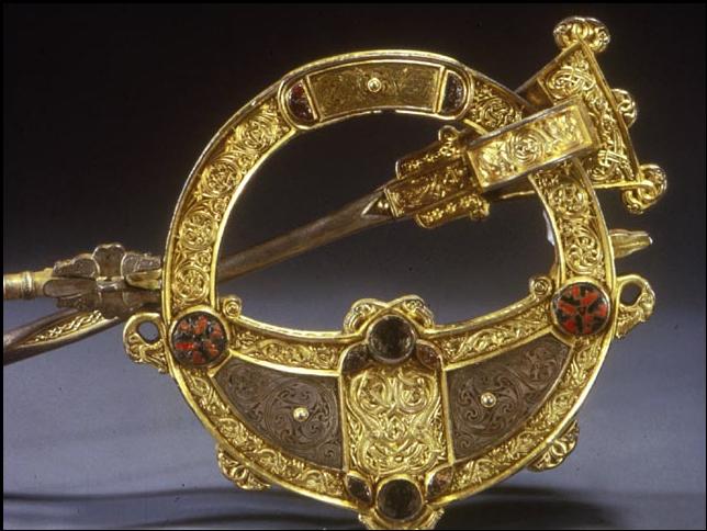 Tara brooch (early 8th century), head and detail. Note: the Tara brooch was not found at the Hill of Tara (see above) but on the seashore near Laytown, Co. Meath.
