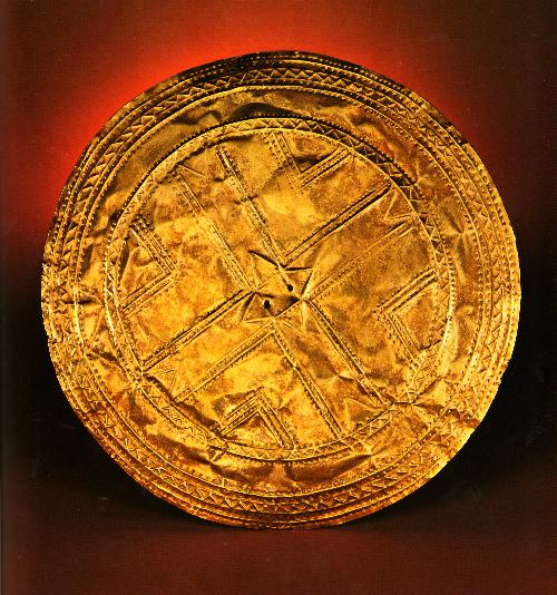 Among the earliest artefacts from the early Bronze Age is the disc of beaten gold from Tedavnet, Co. Monaghan, it is one of about twelve such known discs from Ireland.