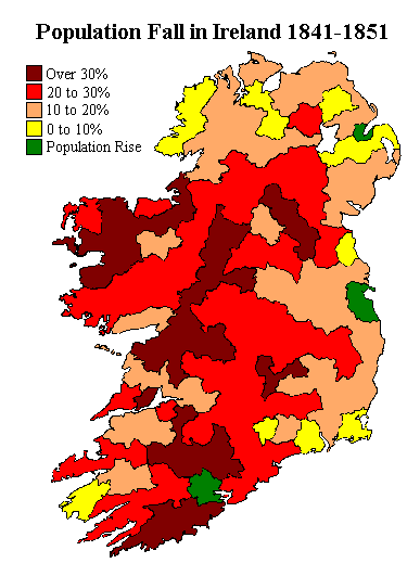 Population shifts in 19th century Ireland