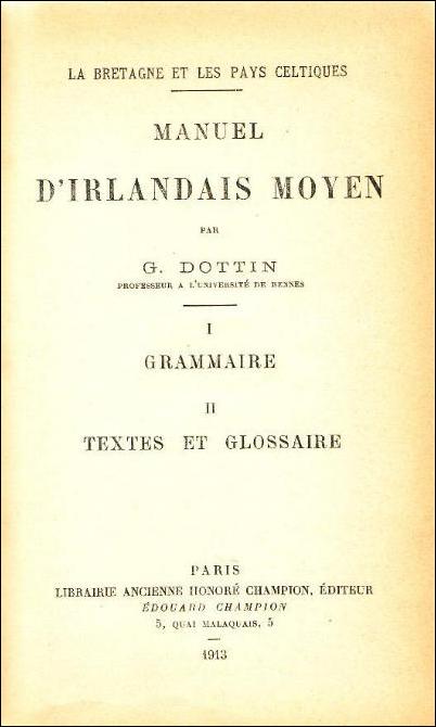 Breatnach, Liam 1994. ‘An Mheán-Ghaeilge’ [Middle Irish], in: McCone, Kim, Damian McManus, Cathal Ó Háinle, Nicholas Williams and Liam Breatnach (eds) 1994. Stair na Gaeilge. In Ómós de Pádraig Ó Fiannachta [The History of Irish. In Honour of Pádraig Ó Fiannachta]. Maynooth: Department of Irish, pp. 221-334.