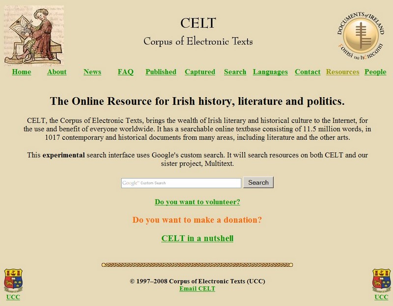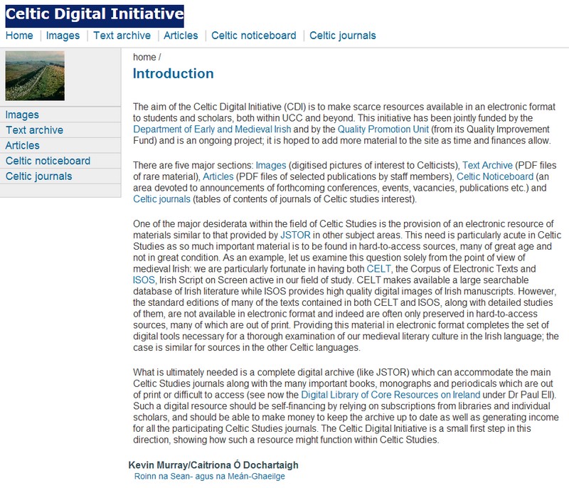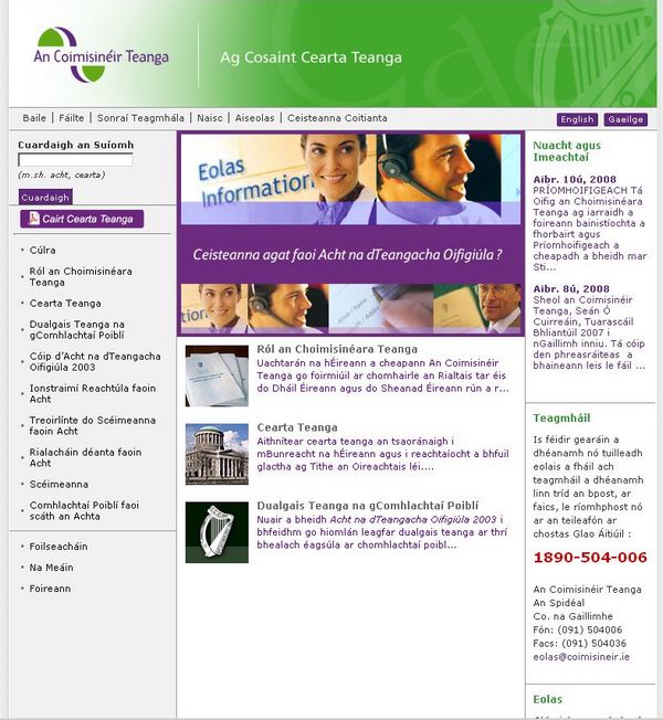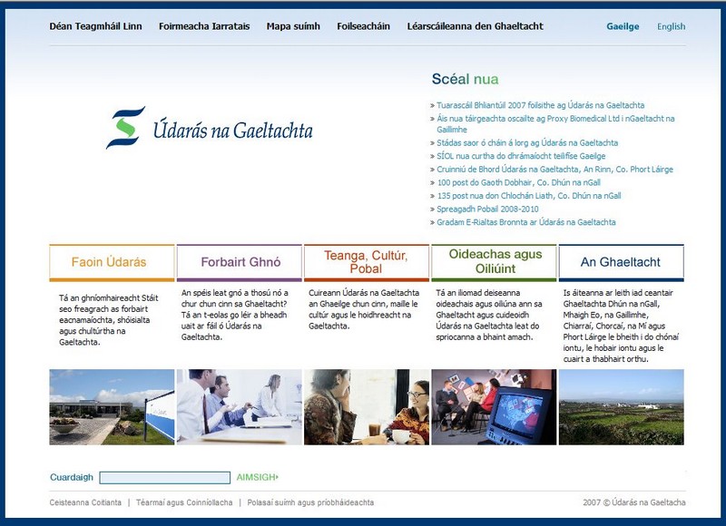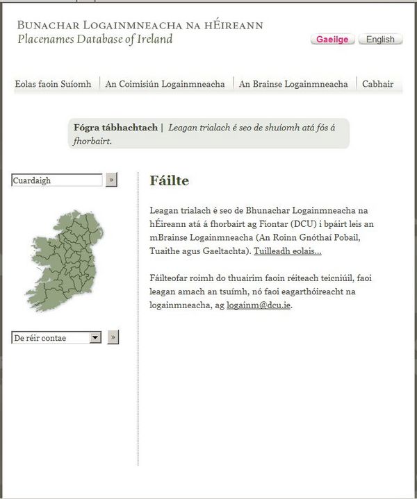 The present section is intended to convey an impression of the wealth of material available on Irish on the internet. Some of this is concerned directly with the Irish language and some is of a more general nature. All the links provided here were operating when this module was updated (January 2025). Some of the screen shots are from older screen captures, but the links do function. With some of the webpages a full screen is required, following the link Open Site in New Window to view the website in question.