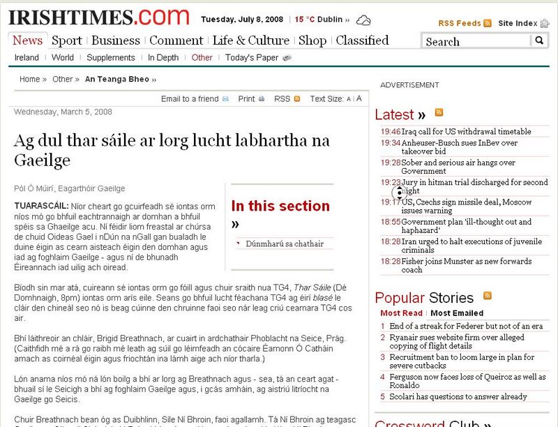 Website: http://www.bbc.co.uk/northernireland/irish/blas