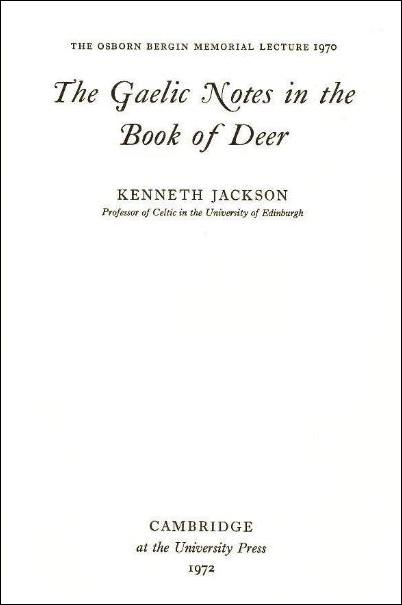 Jackson, Kenneth H. 1972. The Gaelic notes in the Book of Deer. Cambridge: University Press.