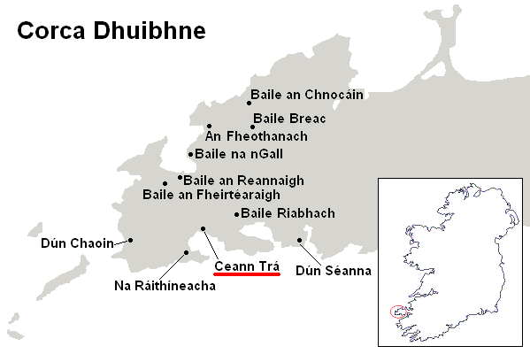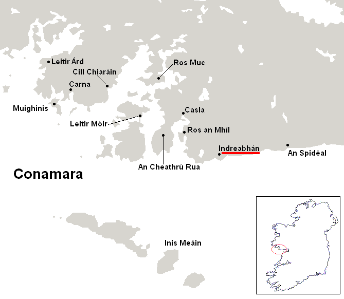 In this section you can view maps of the main Gaeltachtaí (Irish-speaking districts) of present-day Ireland and listen to representative speakers. These areas are to be found along the western seaboard and on the south coast. They represent the remaining pockets of historically continuous districts where Irish is used as an everyday language. As a language of choice in domestic and public settings it is spoken by about 30,000, perhaps 40,000 individuals at the very most. The figures published by the Irish government, which suggest anything up to a million Irish speakers, are a complete exaggeration. It is true that most people have a knowledge of Irish from their schooldays (Irish is compulsory in primary and secondary schools). Competence here varies enormously depending on the quality of the school instruction and possibly exposure to native-speaker Irish. Such people constitute the vast majority of Irish and do not use the language as a means of everyday communication, indeed would not be able to do so, if it were required of them. However, one should also mention that there are many individuals living outside the Gaeltachtaí who use the language from personal conviction and try to foster a high level of fluency within their families.