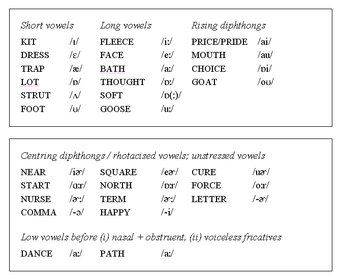 Consonantal lexical sets