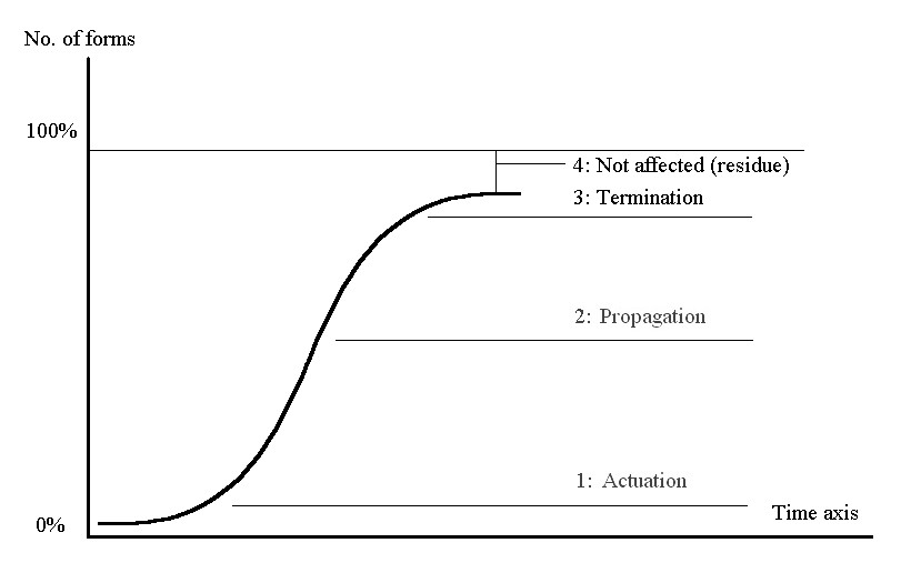 The propagation of change would seem to follow a pattern which is found in other spheres apart from language. The pattern is termed an s-curve because of the approximate shape which it has. In essence an s-curve describes a change which starts slowly, picks up speed and proceeds rapidly but which stops — or at least slows down considerably — before it reaches completion.