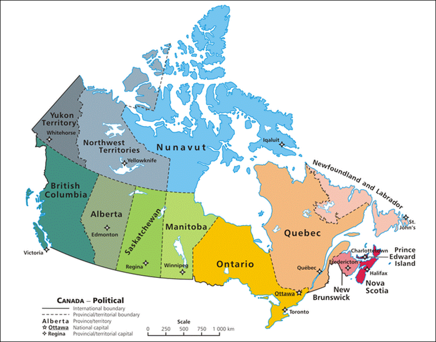 The provinces of Ontario, Québec, Newfoundland & Labrador