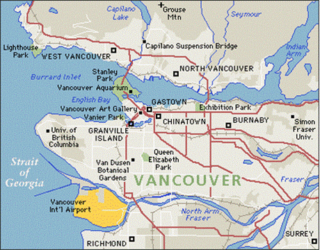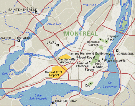 Four of the major cities of Canada: Toronto (5.6), Montreal (3.8), Vancouver (2.3), Ottawa (1.2). The figures in brackets refer to the population of their respective metropolitan areas in millions.