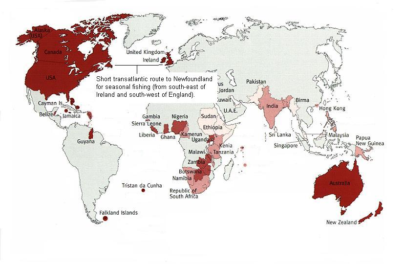The most prominent of the dialect regions is the island of Newfoundland known locally as ‘The Rock’. This island has a history of seasonal migration from Ireland and the West Country of Britain: Workers came over in the summer to partake in the fish industry and returned in the winter and so there was - up until the 19th century - a continuous input of dialect features from the two areas just mentioned and many aspects of Newfoundland English can be accounted for given the Irish and West Country backgrounds of its original settlers.
