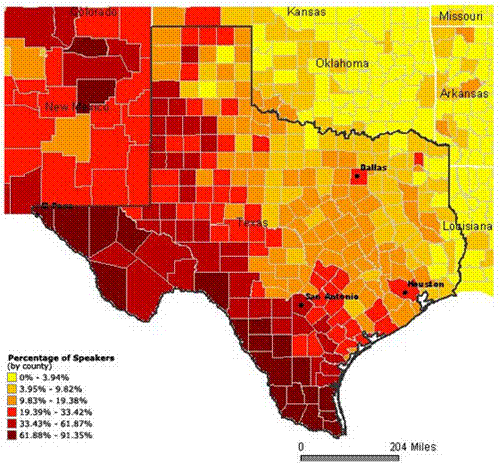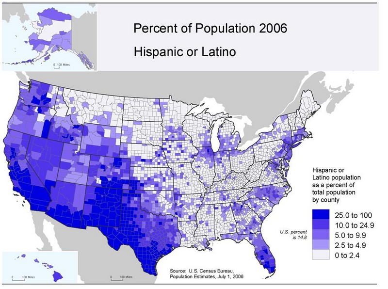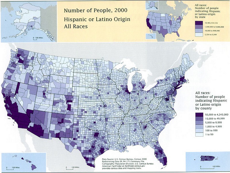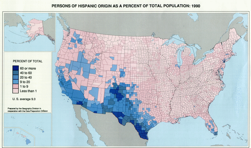 The numbers of Spanish background people has been greatly on the increase in the USA in recent decades as the following three sets of census figures show. By now these people represent the largest non-anglo ethnic group in the United States, slightly outnumbering the African Americans.
