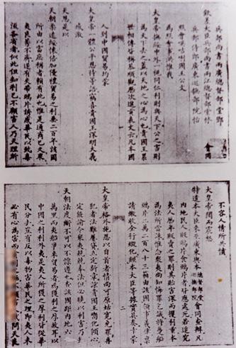 The British and others forced the Qing rulers (the 19th century dynasty in China) to concede trading rights to Europeans in a series of arrangements called nowadays The Unequal Treaties (including The Treaty of Nanjing and The Treaties of Tianjin).