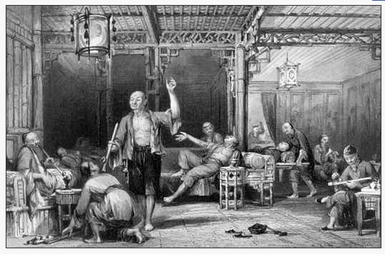 Opium was carried from India by the ships of the East India Company on the way to China in chests which were then used for tea when leaving China. Chinese animosity towards England arose because the British created a market of opium addicts which the Chinese authorities tried to remove.