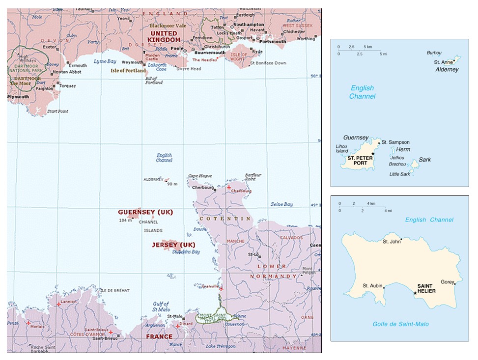 The Channel Islands are British Crown Dependencies off the coast of Normandy in the English Channel. The two main islands are Jersey and Guernsey. The third largest island, Sark, is considerably smaller than either of these. The Channel Islands have been English possessions since the Norman Invasion of England by William the Conqueror in 1066 (they had previously been annexed by Normandy in 933). Unlike the United Kingdom, they are not part of the European Union.