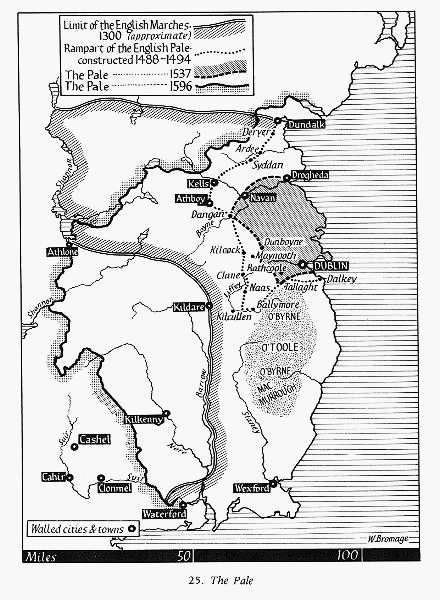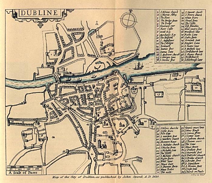 The English language in Dublin has been spoken since the late 12th century when the first settlers came up from the south-east where they had landed around 1169. Subsequently the Pale was established, an area around Dublin and stretching down to the south-east corner of Ireland. Beyond this region the native Irish were in the majority along with the Normans lords who settled in fortified castles in the country. The propaganda view of the Irish was as a barbarous people, hence the phrase ‘beyond the pale’ which refers to the ‘uncivilised’ area outside the medieval east coast of Ireland.