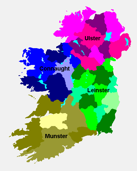 Ireland is divided into four provinces of roughly equal size, Leinster, Munster, Connaught and Ulster (from the east in clockwise direction). Each province consists of a number of counties, 32 in all. The Republic of Ireland consists of 26 counties, the remaining six form the state of Northern Ireland (a part of the United Kingdom). The northern province of Ulster actually consists of nine counties, three of which are within the Republic (Donegal, Cavan and Monaghan). All the main cities of Ireland are located at the estuaries of rivers. In general, the cities were either established or properly developed during the Viking period (the 9th and 10th centuries) as the English names often show, Waterford, Wexford, etc. The Republic of Ireland shows a strong concentration of population in the centre of the east coast in the Dublin metropolitan area.