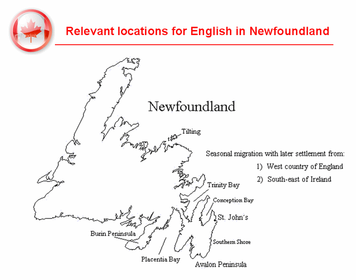 In the constellation of overseas varieties, forms of English in Newfoundland represent a unique situation. These derive from two clear sources, English in the south-east of Ireland and English in the south-west of England, leading to two specific varieties of English in Newfoundland.