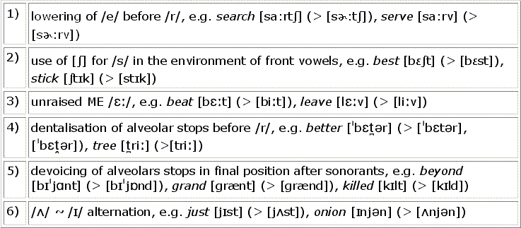 Readers will be aware of the phenomenon of accommodation, by which speakers make their speech more like that of a group with whom they are in contact. Such behaviour has been analysed and its importance in the development of varieties of English has been stressed by authors like Peter Trudgill (see Trudgill 1986). But the converse of accommodation is also attested: dissociation. In Dublin English during the 1990s a variety of English arose whose specific profile can be best explained as a reaction to vernacular forms of English in the capital. The features of the New Pronunciation of Dublin English are diametrically opposed to those of traditional conservative Dublin English (see section on Dublin English in the tree on the left for further details). The reason dissociation is particularly evident in Dublin is because speakers moving away from the vernacular cannot simply adopt RP (this is just not an option in Ireland) and so one can observe a new variety which in key respects is a mirror image of the vernacular (see detailed discussion in Hickey 2005).