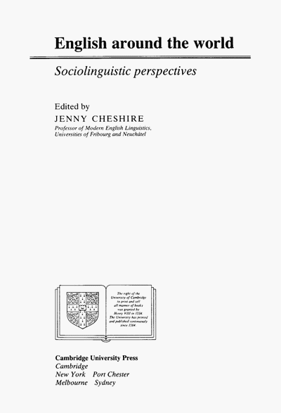 Cheshire, Jenny (ed.) 1991. English around the world. Sociolinguistic perspectives. Cambridge: Cambridge University Press.