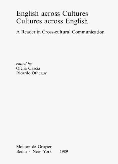 García, Ofelia and Ricardo Otheguy (eds.) 1989. English across Cultures. Cultures across English. A reader in cross-cultural communication. Berlin: Mouton de Gruyter.