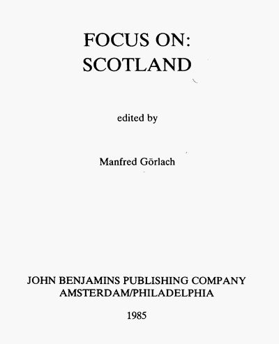 Görlach, Manfred (ed.) 1985. Focus on: Scotland. Varieties of English around the World, General Series, Vol. 5. Amsterdam: John Benjamins.