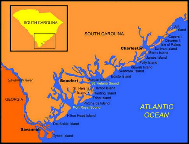 In 1670 British colonials and African slaves moved up from Barbados and landed at Charleston in South Carolina. The slaves were put to work on the rice plantations in the area and they continued their form of English which became what is now known as Gullah or Sea Island Creole. The latter term refers to the fact that this variety is now only found on the islands off the coast of South Carolina and Georgia and in the marshy coastal region of these south-eastern states. Within the group of African American varieties in the present-day United States, Gullah occupies a special position. On the one hand it is spoken in a relatively isolated part of the country (and shows no urban forms) and on the other its actual its source is well-known, given the transportation of African slaves from the Caribbean to this region in the late 17th century.