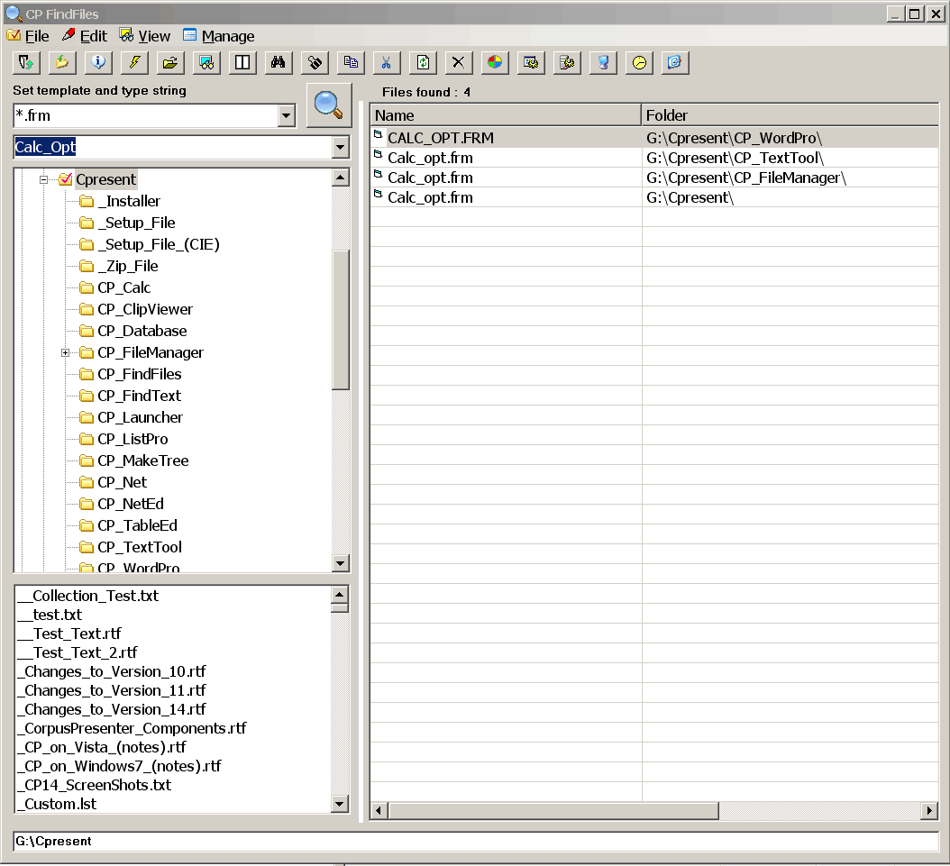 With Corpus Presenter Find Files you can search for any files on your computer. All you need do is enter a part of the name of the file(s) you are looking for. The program returns all files in all directories which contain the string you entered in their names. The returns are displayed in a grid from which you can view, edit, copy, move, delete any or all of the returned files.